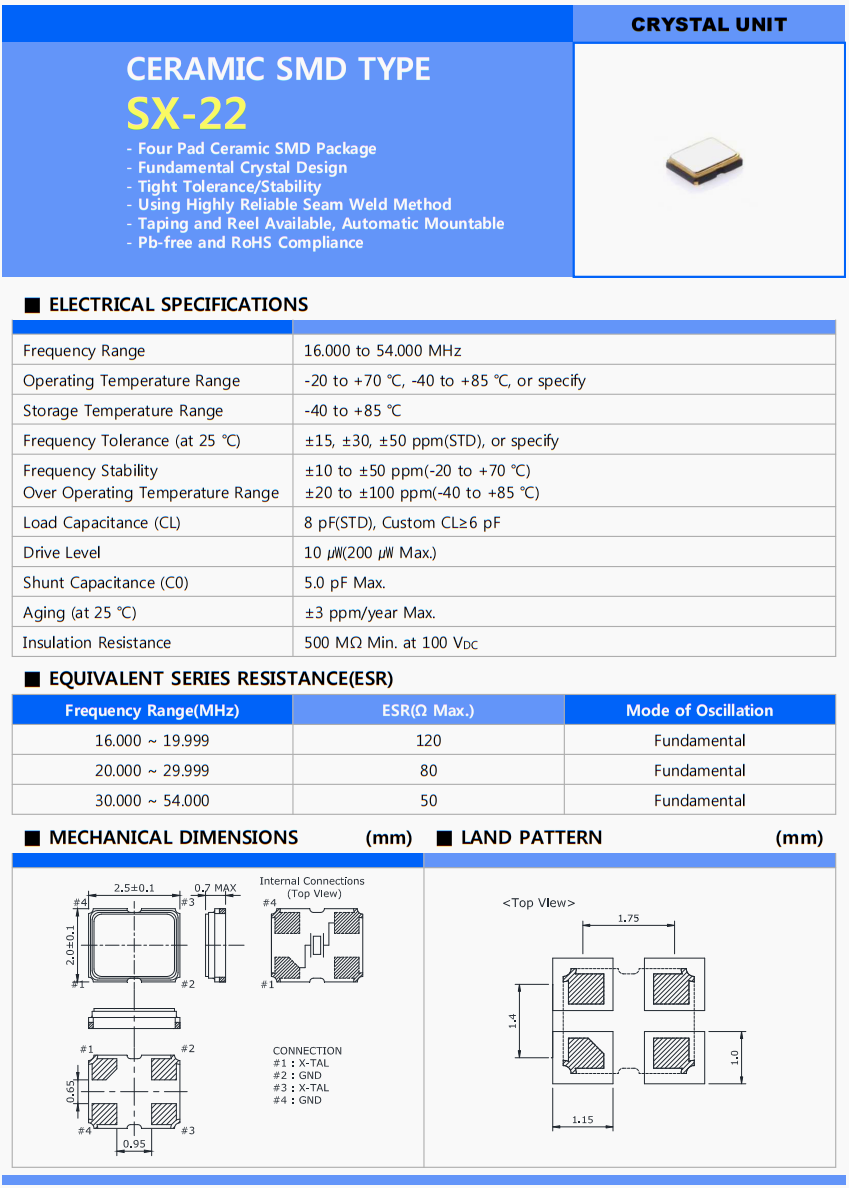 | 負(fù)載電容 | 8 pF(STD), Custom CL≥6 pF |