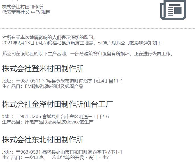 日本發生地震對村田晶振及西鐵城晶振會有什么影響?有在使用晶振的朋友都知道,自從疫情開始的那一刻開始,電子元器件產品的價格就開始漲起來.因為咱國內的疫情控制的特別好,很多工廠都能夠復工,投入生產中.雖然說比平常晚了一些,但跟國外比還算更優越一些了.別光說電子產品,疫情爆發的那一會,藥店里的口罩,體溫計,耳溫槍,電子體溫計等檢測系列產品一時間全賣斷貨.防護用品更是到處買不著.很多產品的原材料是采用國外進口原料生產制作而成,國外因為疫情原因無法正常開工,使得交貨變得困難,縱使僅有點現成的庫存是沒辦法滿足全國人民使用的.所以,口罩從原來的幾分錢漲到了幾塊錢一個.幾十塊的體溫檢測產品從原本的幾十漲到了幾百.