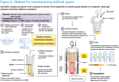 然而,不久之后,即使在巴西也很難獲得大型優質石英塊,因為石英材料對彈藥來說非常重要。據現任東京工業大學生物科學與生物技術學院講師的Kunihiko Nagai先生介紹,他曾參與過東洋通信設備公司的人造石英開發,“幾乎所有的礦山都能生產出優質的產品。大塊的天然石英是由美國陸軍控制的,但是我們從日本到巴西旅行,并且能夠確保我們需要的天然石英。“